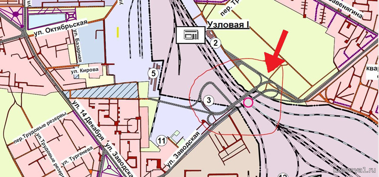 В связи с этим, обратились к Николаю Терехову с вопросом: не помешает ли возводимое здание строительству моста в будущем? На что получили ответ: «Согласно генеральному плану г.Узловая земельные участки, на которых в настоящее время ведётся строительство, не предусмотрены для строительства путепровода», хотя если посмотреть карту с нанесённой на неё развязкой, то становится очевидно, что всё делается как раз на месте запланированного генпланом моста.uzl-04