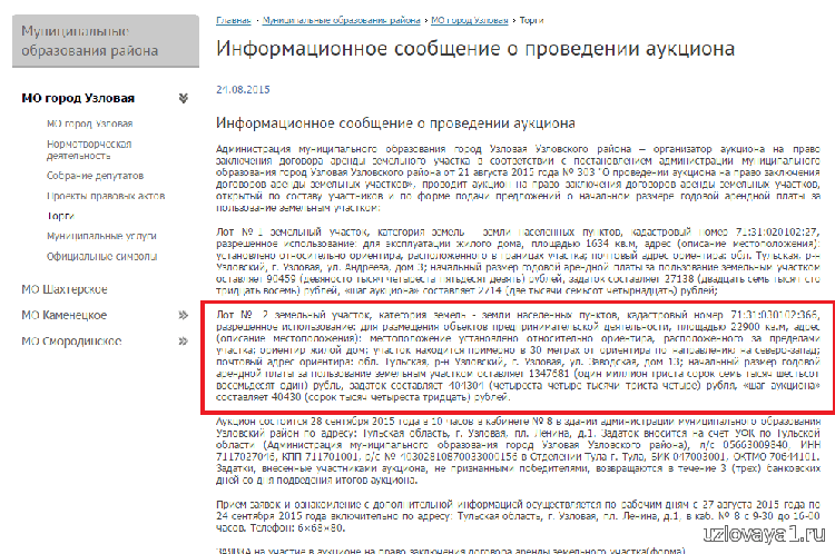 Да и не только по этому вопросу! В Узловой получить участок мелким предпринимателям просто не возможно! Такое ощущение, что власть в принципе не заинтересована в развитии малого предпринимательства. Зарплату этим рожам не за что платить! Разогнать половину можно, и никто даже не заметит их отсутствия!!!