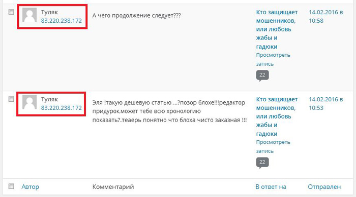 Вчера наш сайт немного напрягся от потока комментариев, которые шли с одного и того же IP адреса 83.220.238.172.
