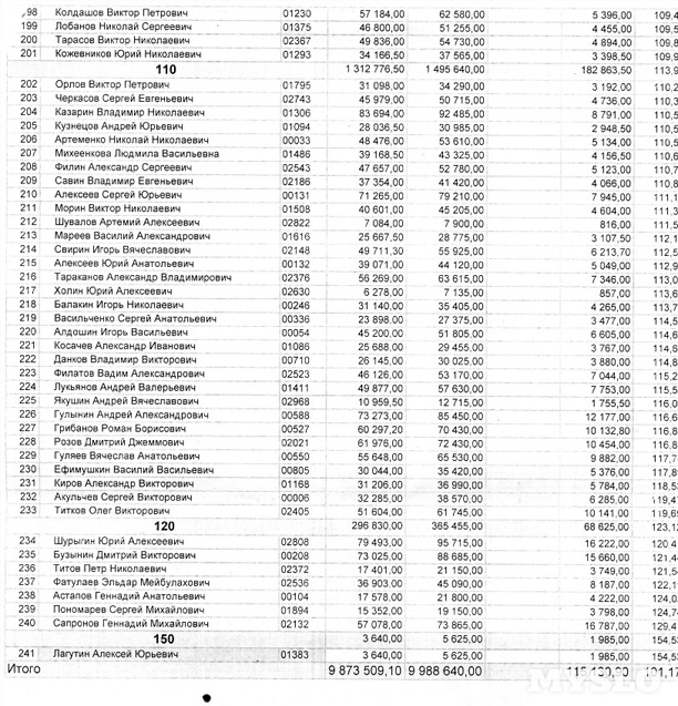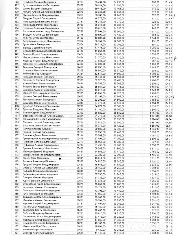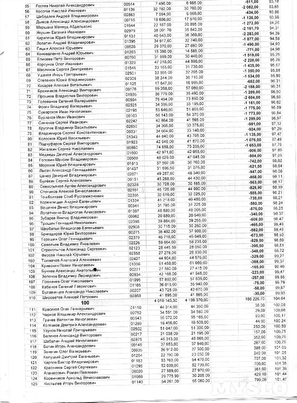 Водители разделены на группы – 60, 70, 80 и т. д. – эти цифры показывают, сколько процентов от заданной планом суммы привёз водитель. «В графах «отклонение» указывается, какой суммы не хватает, сколько нужно доложить из своего кармана, чтоб получить нормальную премию, – объясняют водители. – Чтобы 120% от плана набрать – это надо сутками из автобуса не вылезать».