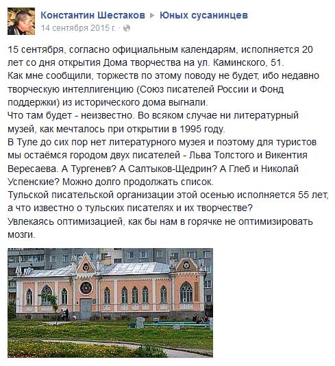 Осенью прошлого года в аккаунте Константина Шестакова в «Фейсбуке» появился вот такой пост: