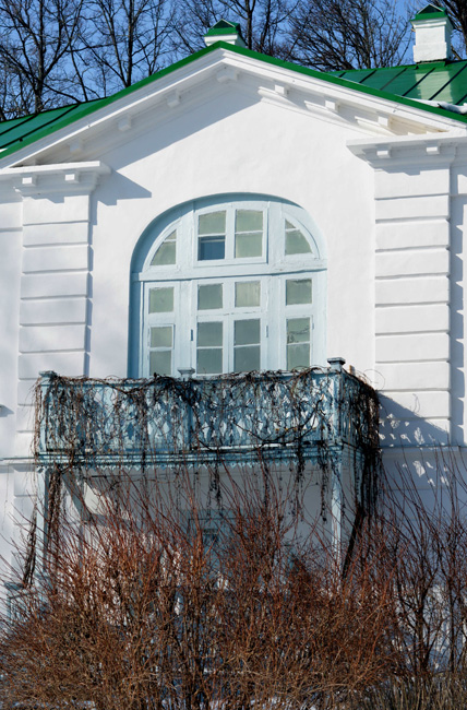 Лавочка стоит на самом крыльце дома Толстого. Такого белого снаружи, тепло-коричневого внутри. Там есть диван. Кожаный, черный, самый любимый Толстым. На нем, словно в одной из комнат Версаля с кроватью с перьями на балдахине, рожали.