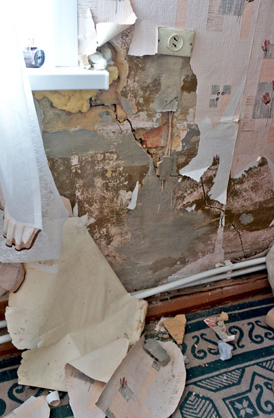 Наиболее ужасающую картину дом № 5 представлял два года назад. Во втором подъезде осыпались межкомнатные перегородки, рвались электрические кабели, прорывало коммуникации в техподполье, разрушались железобетонные конструкции лестничной клетки. Кирпичные столбы, на которые опирались несущие конструкции пола под квартирами № 10 и 11, уходили под землю, стены трескались. Ни один эксперт не давал гарантии, что жилой дом простоит до конца года.