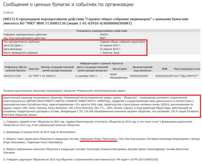 Так что личины реальных собственников АО «Ревякинский металлопрокатный завод» запрятаны достаточно далеко.