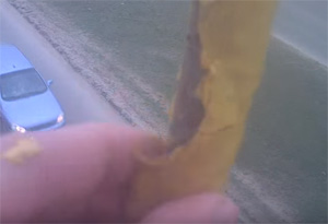 На кадрах видно, как новая краска облупливается вместе с кусками ржавчины, на которую она была нанесена. По словам самого пользователя, он сделал эти видео на следующий день после покраски.
