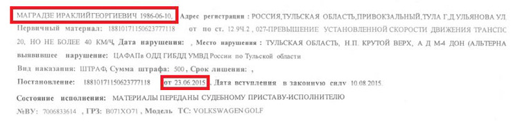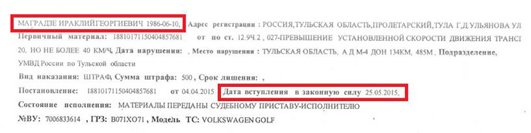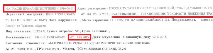 Но это всё семечки. Уже через три дня, 23.06.2015 г., лишенный прав Маградзе садится за руль и попадается на очередном превышении скорости.magr-02