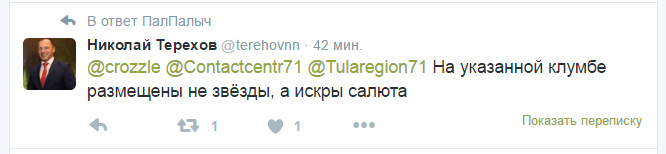 Об этом широкой общественности, а также правительству области через свой twitter сообщил лично глава администрации Узловского района Николай Терехов. И приложил фотографию. Чтобы никто не сомневался…