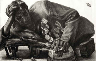 На рисунке художника Геннадия Доброва изображен солдат Алексей Курганов