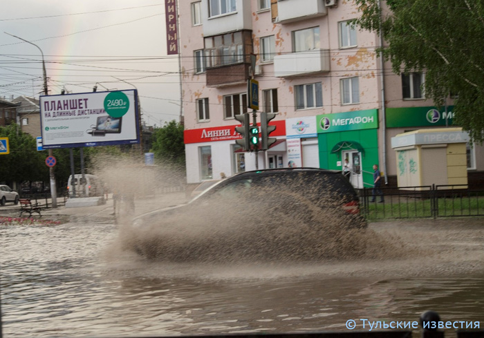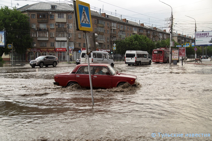 Да, город Тула и вся Тульская область однозначно не готовы не только к таким ливням, но и сильным или продолжительным дождям. Все дороги вмиг превратились в бурные реки, в низинах образовались озера. Шла домой с Красноармейского пр. по Лейтейзена вверх, сняв туфли. Местами вода доходила до колен. Хотелось бы узнать у советника губернатора — В.Г. Груздева, почему Тула, находящаяся 4 года на ручном его управлении, пребывает после дождей в таком состоянии?