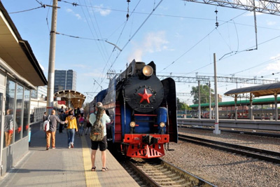 Самый настоящий паровоз, работающий на угле и паросиловой установке, дает последний зычный гудок, да такой, что слышит его весь столичный Курский вокзал, и локомотив, тянущий за собой два вагона с туристами, набирает ход
