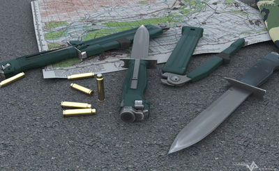 Да, стреляющий нож – это оружие внезапного нападения или последнего шанса, которое может сохранить жизнь его обладателю. Поэтому конструкция ударно-спускового механизма должна быть таковой, чтобы в стрессовом состоянии человек мог элементарно произвести несколько выстрелов. Так как стреляющий нож – оружие универсальное, то его клинок также должен обладать целым рядом специфических свойств, в том числе и свойствами ножей выживания.