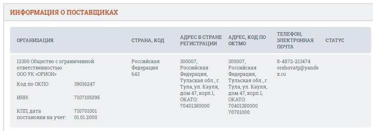 Данный аукцион выиграло некое ООО «УК «Орион».