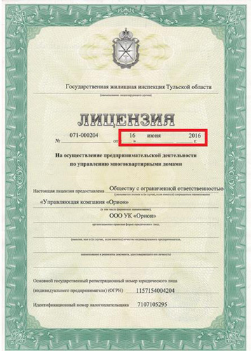 Ко всему прочему ООО «УК «Орион» получило лицензию на управление домами… 16 июня 2016 года.