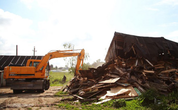 23 июня в Плеханово снова с самого утра шумно и многолюдно: рабочие сносят незаконные дома.