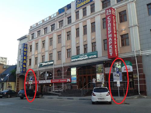 Вот еще один придиразм. Это, знаки парковки:dyra-04