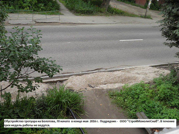 «Обустройство тротуара» на улице Болотова в Туле замерло уже на три недели. Однако сайт администрации докладывает, что работы ведутся…