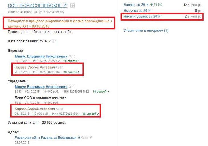 Судя по этим данным, как и сообщал наш читатель, данные фирмы находятся в процессе реорганизации в форме присоединения, то есть на первом этапе «серой» ликвидации.