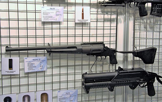 На первом месте дальний родственник «Рыси», экспериментальное помповое ружье РБ-12 (расшифровывается ружье Бандаевского или ружье боевое 12 калибра). Подобно «Рыси», РБ-12 создавалось в инициативном порядке как оригинальное оружие полиции и защиты жилища.