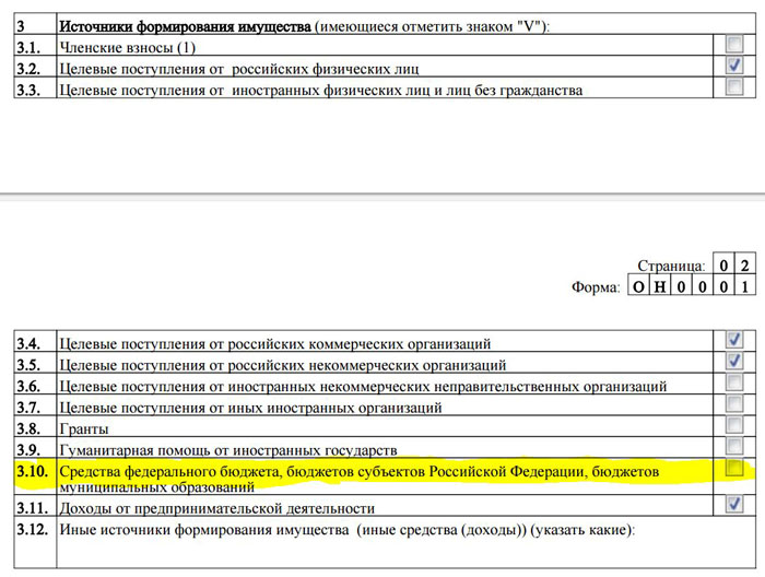 В числе источников формирования имущества АНО не отмечены «3.10. Средства федерального бюджета, бюджетов субъектов Российской Федерации, бюджетов муниципальных образований».