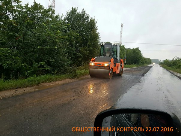 22.07.2016 г. в Башино начался дождь в 15 часов 30 минут. Фотографии и видео сделаны 20 часов 30 минут. И соответственно, не трудно понять, что а/бетонную смесь укладывали во время дождя. Кроме этого есть свидетели, жители с.Башино.