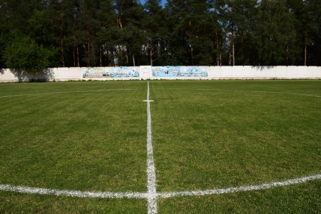 Еще несколько минут проходят без явных моментов и звучит свисток арбитра, уводящий команды на перерыв. Стадион и городской парк, окружающий его, наполняются музыкой. В этом тоже свой колорит: играют Сектор Газа, Земляне, Трофим и Верка Сердючка. Сам спорткомплекс значительно преобразился после недавнего ремонта: внутри открылось множество секций, салон красоты. Поле тоже пытались исправить: засеивали проплешины, клали куски дерна на вечно „голые“ вратарские зоны, даже приезжал каток для выравнивания кочек. Эффект был, но минимальный. Тем не менее по областным меркам стадион в Алексине — один из лучших.