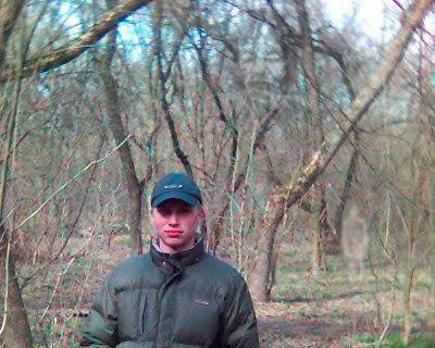 А дело в том, что поодаль, за спиной юноши отчетливо виден белый силуэт, скорее всего мужской. Но это не самое страшное, самое страшное, что чуть ближе, почти над головой парня…не менее отчетливо проступает чье-то лицо! Конечно, я таких фотографий с привидениями «за пять минут в Paint’е» несколько штук сделаю, но ребята клялись и божились, что фото подлинное(а обратное так и не доказано), и что на момент съемки никаких посторонних объектов в кадр не попадало.