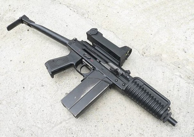 Приклад складывается вверх-вперёд. Как и все остальные детали, кроме пластиковых пистолетной рукоятки и цевья, он выполнен из стали. В сложенном состоянии автомат пригоден для скрытного ношения. Также для удобства скрытого ношения рукоятка затвора сделана складной. В отличие от автомата Калашникова щель для ручки затвора постоянно открыта.