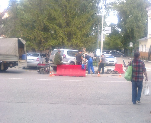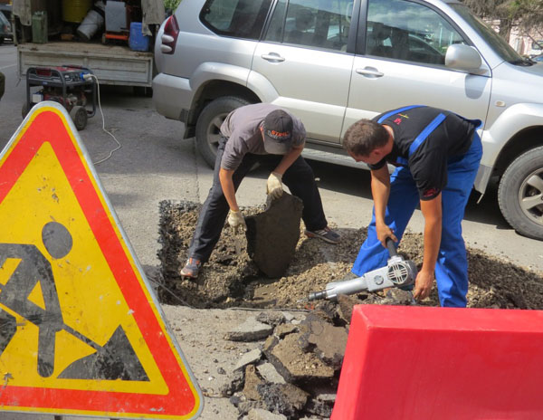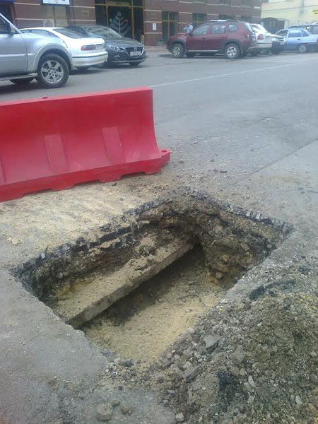 Бригада рабочих бодро расковыряла приснопамятную дыру и оставила ее пока отстояться.