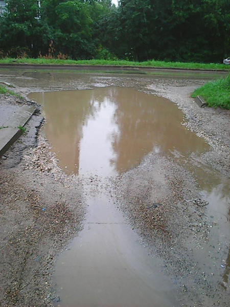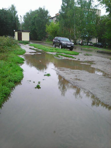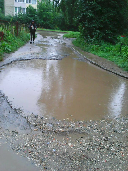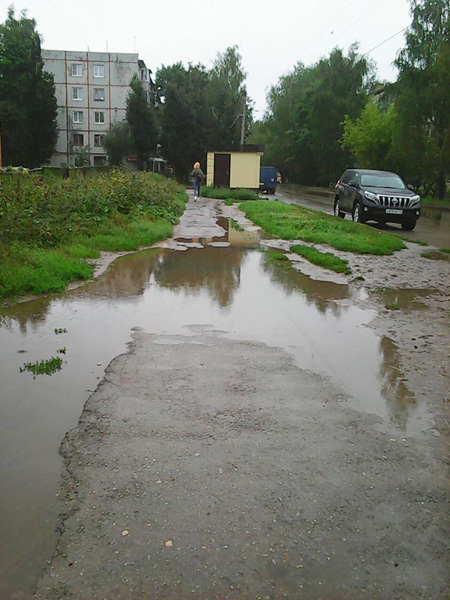 Сегодня дождь лил всю ночь и день. Как можно пройти куда-нибудь после таких ремонтов дорог, тротуары по ул.Юбилейная [в Щекине] вообще отсутствуют. А рядом школа и садик.