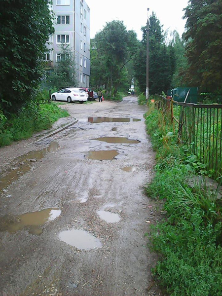 Дом 5. По таким дорогам мы выходим на ул. Юбилейная. Настоящее «море», пенсионеры падают на таких дорогах.