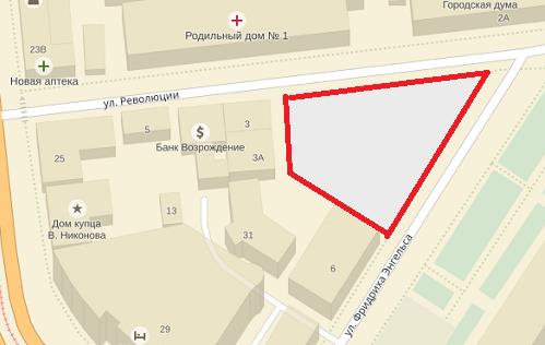 И, наконец, последнее, в границы данного участка входит проезжая часть ул. Ф. Энгельса и ул. Революции…
