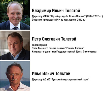 В начале девяностых усадьба «Ясная Поляна», где жил и творил Лев Николаевич Толстой находилась в удручающем состоянии. В 1994 году принципиальным решением проблемы становится назначение директором музея одного из потомков писателя – Владимира Ильича Толстого. Спустя десять лет создается Международный фонд «Наследие Л.Н. Толстого», соучредителями которого становится ряд потомков писателя, среди которых: (см. фото слева)