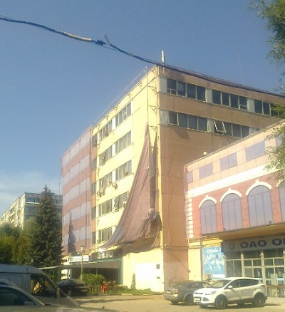 Однако уже сейчас закрадываются сомнения в добросовестности подрядчиков этого проекта. Вместо того, чтобы провести работы по ремонту изрядно обшарпанного фасада бывшего завода «Октава», его просто… затянули баннерами с нарисованными окнами.