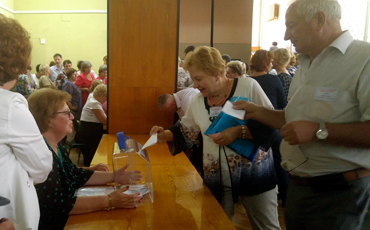 После хаотичного многоразового голосования за перестановки в повестке дня, непонятные многим (по всей вероятности, в зале были как “посвященные”, так и “простодушные” делегаты), пришли к решению перенести-таки вопрос об изменениях в уставе и рассмотреть его после выборов.