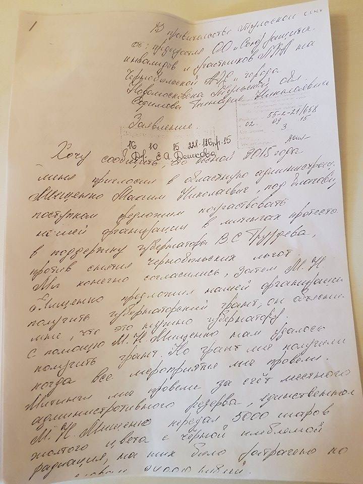 Донос Геннадия Ефимова на Максима Мищенко, написанный ровно год назадef-01