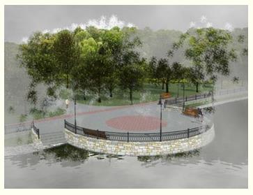 2016-09-19-12Ну и, наконец, сам горсад. Здесь планируется выложить плиткой набережную, сделать красивые каменные ступени при входе на мост, напротив дворца сделать большую круглую смотровую площадку с двумя спусками к воде по краям, а с торца пруда (где плотина) сделать автостоянку и место под торговые ряды…
