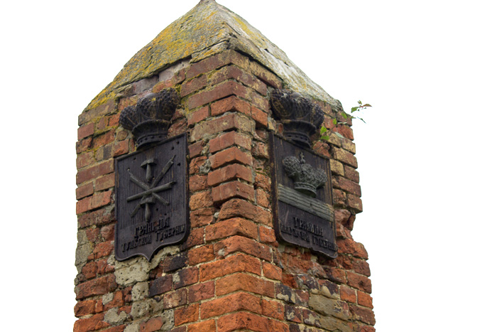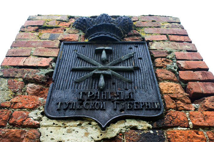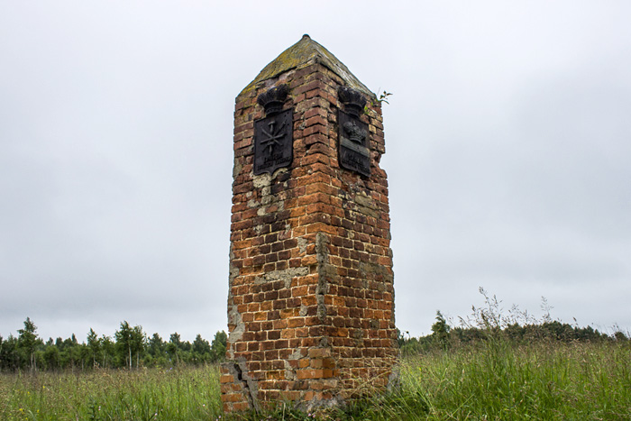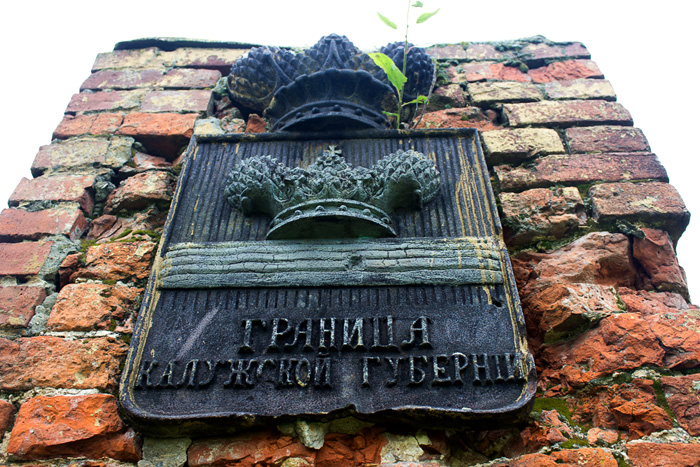 Как-то раз катаясь по окрестным областям и проезжая по какой-то совершенно второстепенной дороге заметили кирпичный столб в стороне. Интуиция подсказала, что это может быть что-то интересное и мы решили вернуться посмотреть. Так оно и оказалось — дореволюционный кирпичный столб обозначающий границу Тульской и Калужской губерний.gran-01