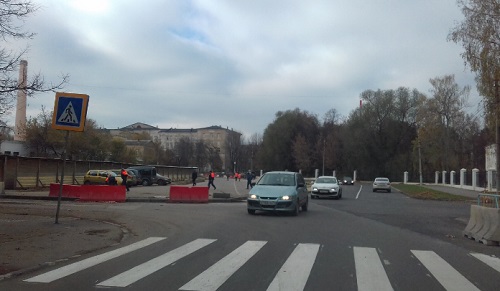 Да и на таком повороте время от времени машины будут на тротуар вылетать.