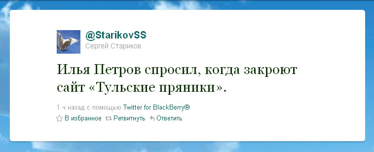 Значит, губернатор нас читает, и, мы надеемся,  делает  выводы. Наверное, поэтому он не стал отвечать на провокацию со стороны деятеля  из клуба поклонников губернатора Дудки, который спросил у него: “Когда закроют Тульские PRяники”?