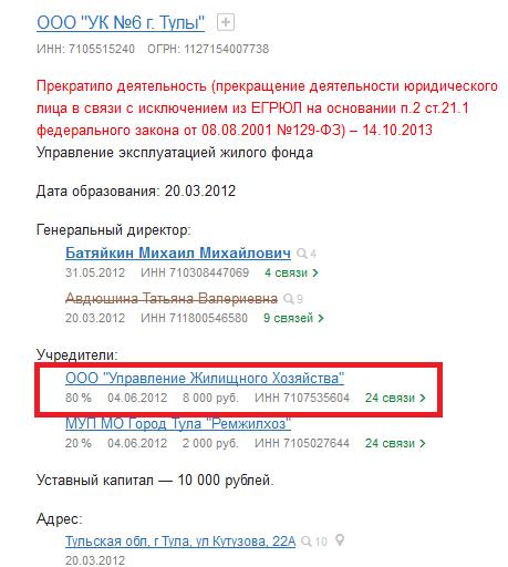 Начавший свою карьеру с раздербана дубенской коммуналки. См., к примеру, арбитражное дело № А68-11128/2015.uk-06-dubnaserv