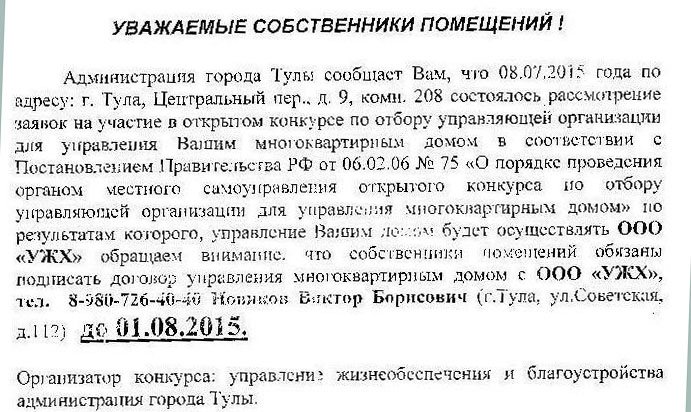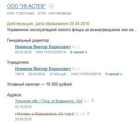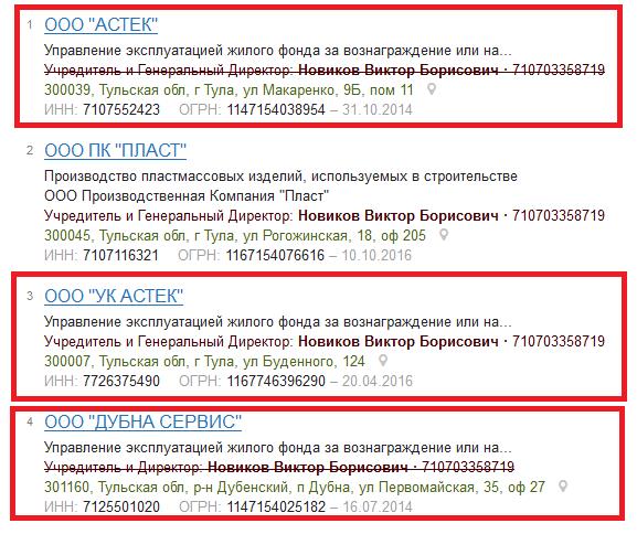 Жители подозревают, что за её предшественницей, обанкротившейся управляющей компанией ООО «Управления жилищным хозяйством» (ООО «УЖХ»), и новой УК — ООО «Астек» стоят одни и те же персонажи тульского зазеркалья.