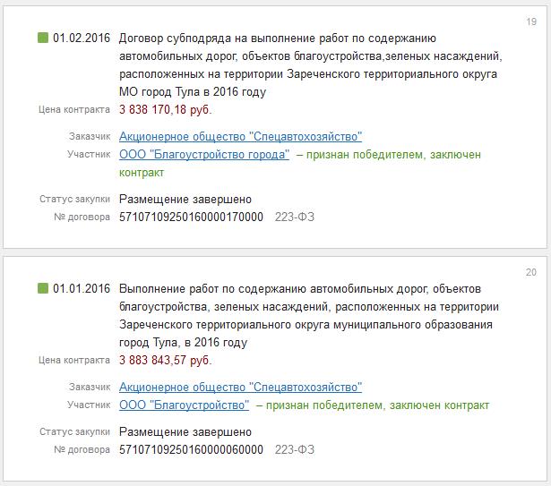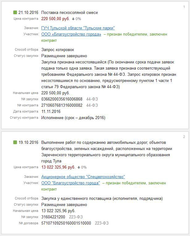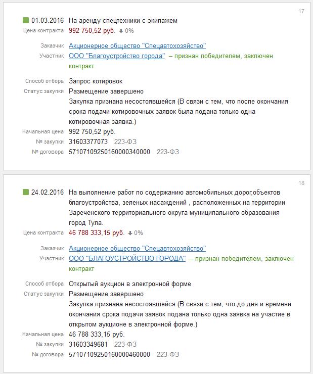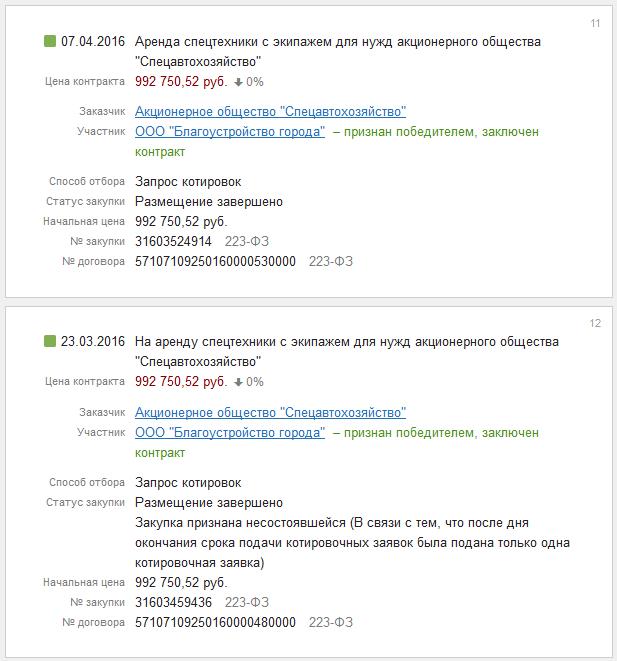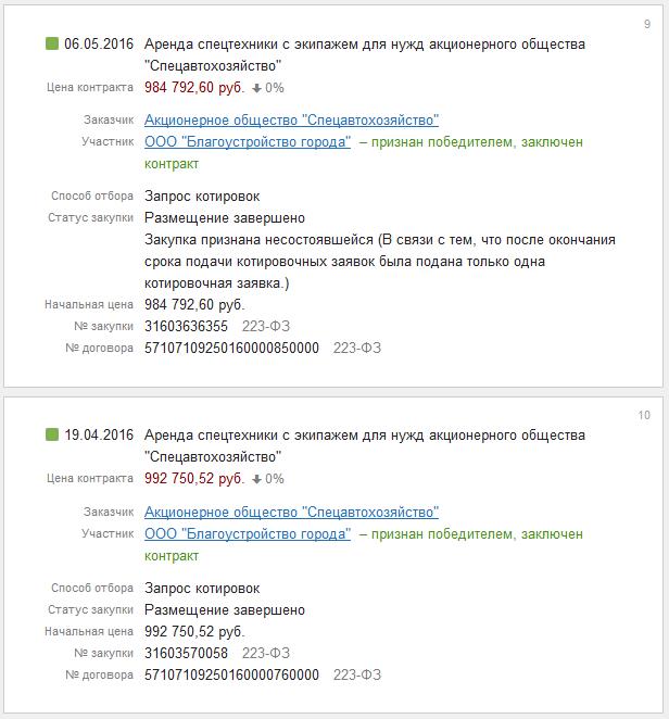 В дальнейшем ООО «Благоустройство города» выигрывало конкурсы на сумму 85 миллионов рублей также в основном в гордом одиночестве.