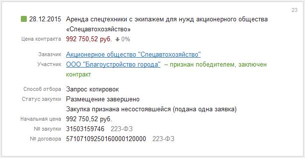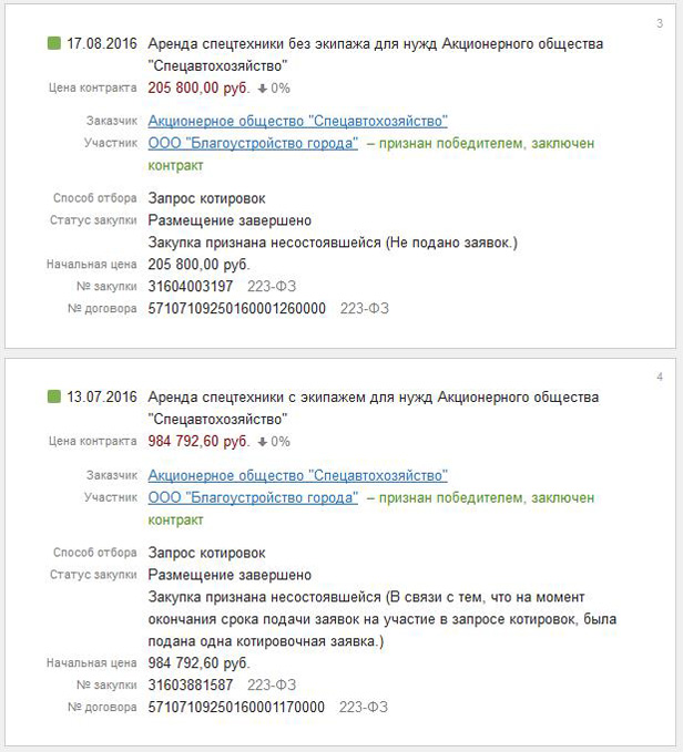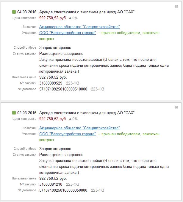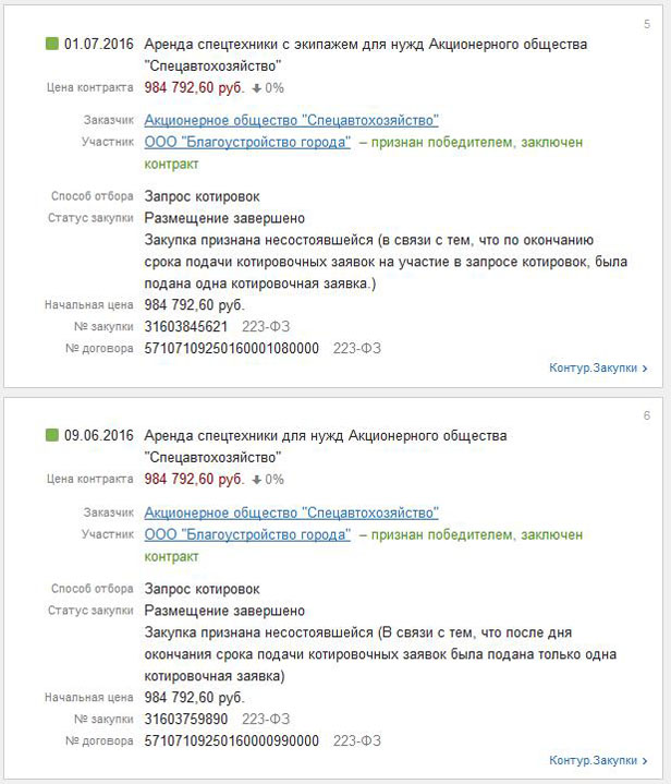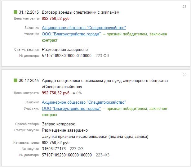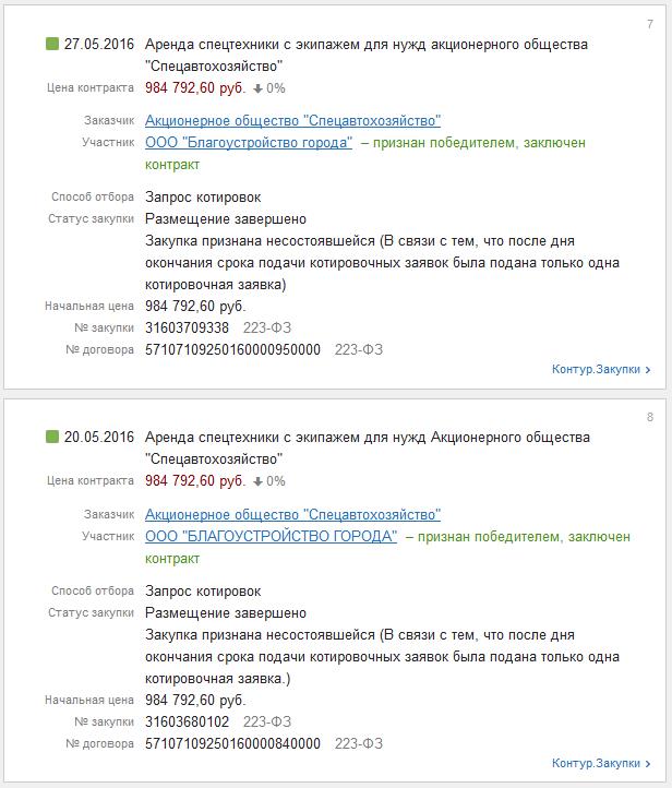 Всё это выглядит эпичным, особенно если вспомнить, что предприятие с уставным фондом в 10.000 (десять тысяч рублей) было зарегистрировано 09.12.2015 г., а уже через ДЕВЯТНАДЦАТЬ ДНЕЙ приняло участие в конкурсах — 28, 30 и 31 декабря 2015 года, в которых оно было ЕДИНСТВЕННЫМ участником.