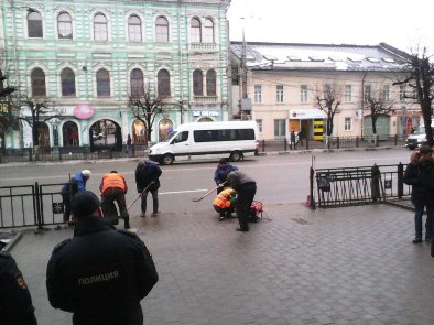 В соцсетях появились фотографии, на которых видно, как разбирают заграждение рядом с молодёжным центром «Родина».