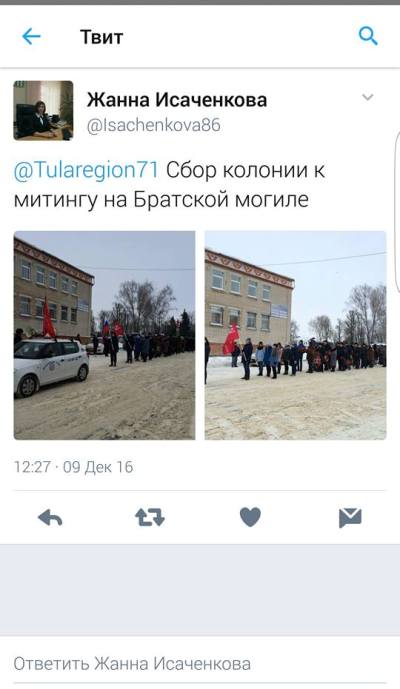 А чем не колония? Обзвонили бюджетников, в приказном порядке собрали на митинг. И пох, что у них семьи, уроки проверить, мужьям обед приготовить. Веневская колония секретарши Абрамовой.