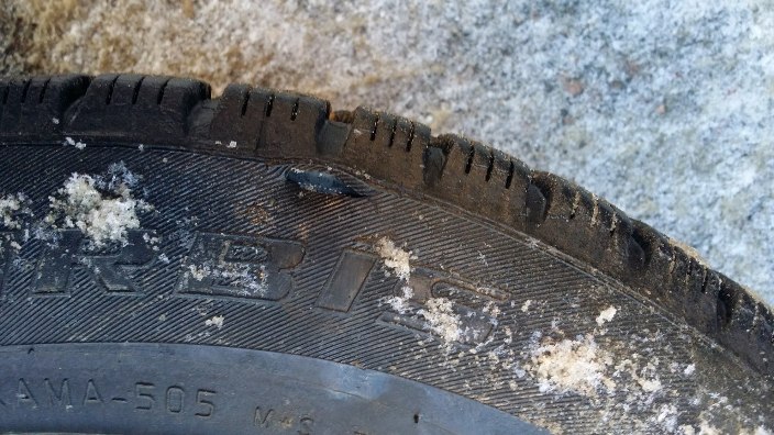 Поехали в шиномонтаж. Говорят порез ножом . Диск даже не поцарапан. Лихорадочно начинаю вспоминать кому что делал нехорошего в последнее время. Вроде нет таких. Соседи вроде не должны. Машины стоят уже более 10 лет на одном и том же месте.Никому не мешают. Завис. Мастер шиномотажа говорит- сделать можно. Нужно варить часа три. Но гарантии что нормально ходить будет никакой. У кого-то ходят годы, а у кого-то несколько дней. Смотря как ездить.То есть лотерея. Резина Гудиер арктик. Второй сезон. Одно колесо менять — нет смысла. Значит — пара. Едем в 4 колеса. Только открылись. Цена 4750 баллон. Рынок на Рязанке дороже. Следующий магаз — нет таких. Ещё один — тоже. Возврат в 4 колеса. Берём. Шиномонтаж — меняем. Итого 10300 тыров с утра пораньше. Настроение никакое.avto-02