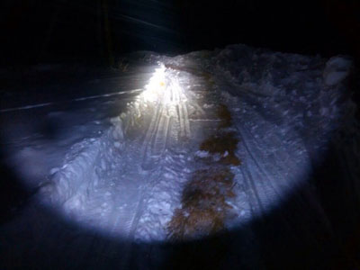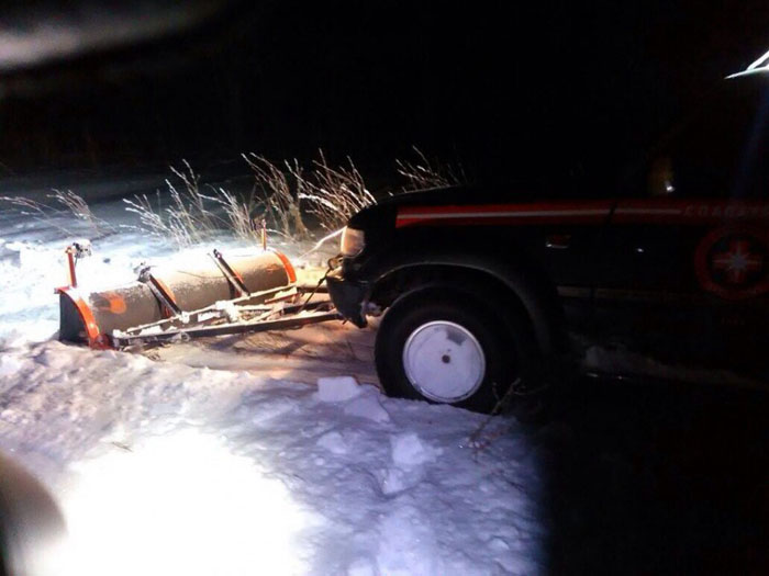 Проводили мы власть и стали расходиться по домам. Иду я домой и вдруг сзади меня медленно догоняет машина. Пропускаю ее, но она останавливается и выходят оттуда… три симпатичных девочки и парень. С улыбкой молодежь сообщила, что они прочитали наше сообщение о дороге и решили нам помочь. Но трактор то часть пути уже прошел… Я с ужасом на них посмотрела-ночь, снега по колено, на дорогу в темени и намека нет, рельеф круто-волнистый… а застрянут… а сломаются… а как их вытаскивать… До Паши-нашего соседа, дорога с горки на горку… До Василисы — участок с непрочной плотиной…