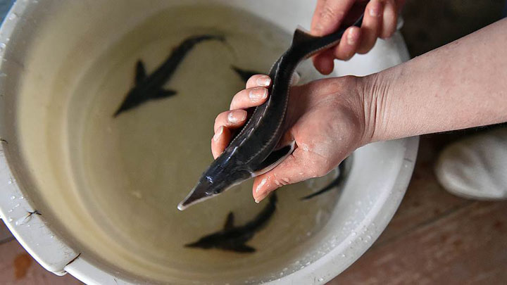 За два месяца до «родов» самок прекращают кормить. Их готовят к «доению», или, по-научному, получению икры «прижизненным методом». Допотопный способ добычи деликатеса такой: самкам вспарывают брюхо, вынимают икру, зашивают их и выпускают. При этом большая часть из них гибнет. А если использовать современный метод, выживают 99 процентов самок.