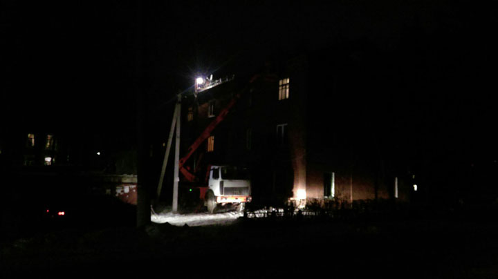 Кстати, о ночи. У работников в «Ледоколе», как у кошек, есть способность видеть в темноте. Иначе, как они ведут ремонт после захода солнца на высоте? Ещё у кошек они на прокат взяли талант пластичности и грациозности. Лед, скользко,техника безопасности — все это не страшно людям-котам!!!!yasn-03noch