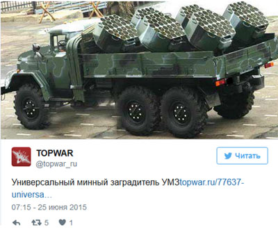 Кроме этого, на вооружении армии РФ имеются универсальные минные заградители «ЗИЛ-131», которые предназначены для постановки минных полей, а дальность их работы достигает 100 метров.